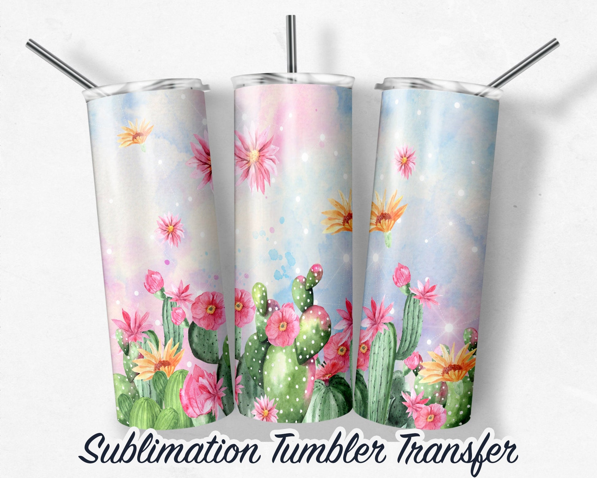 Watercolor Cactus Sublimation Transfer Print For 20 oz Tumblers - 30 oz Tumblers - Ready To press - Heat Transfers