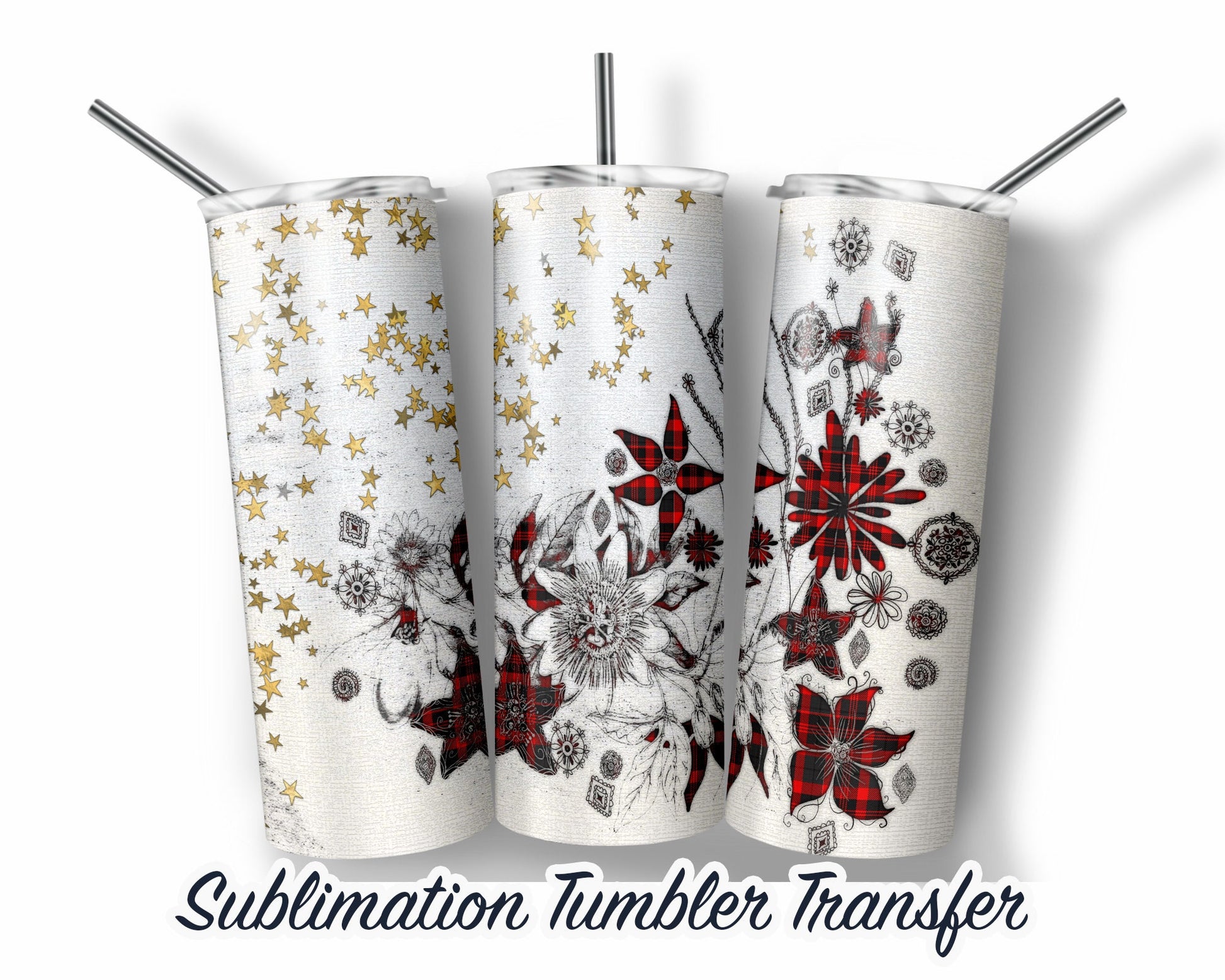 White Christmas Vintage Sublimation Transfer Print For 20 oz - 30 oz Tumbler - Ready To press - Heat Transfers