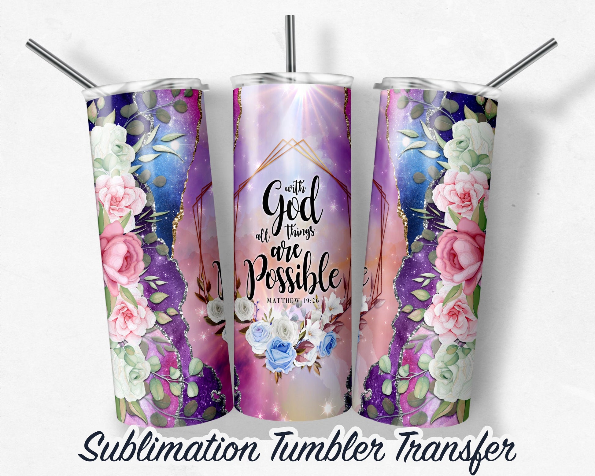 With God all things are possible Matthew 19:26 Sublimation Transfer Print For 20 oz - 30 oz Skinny Tumbler - RTP