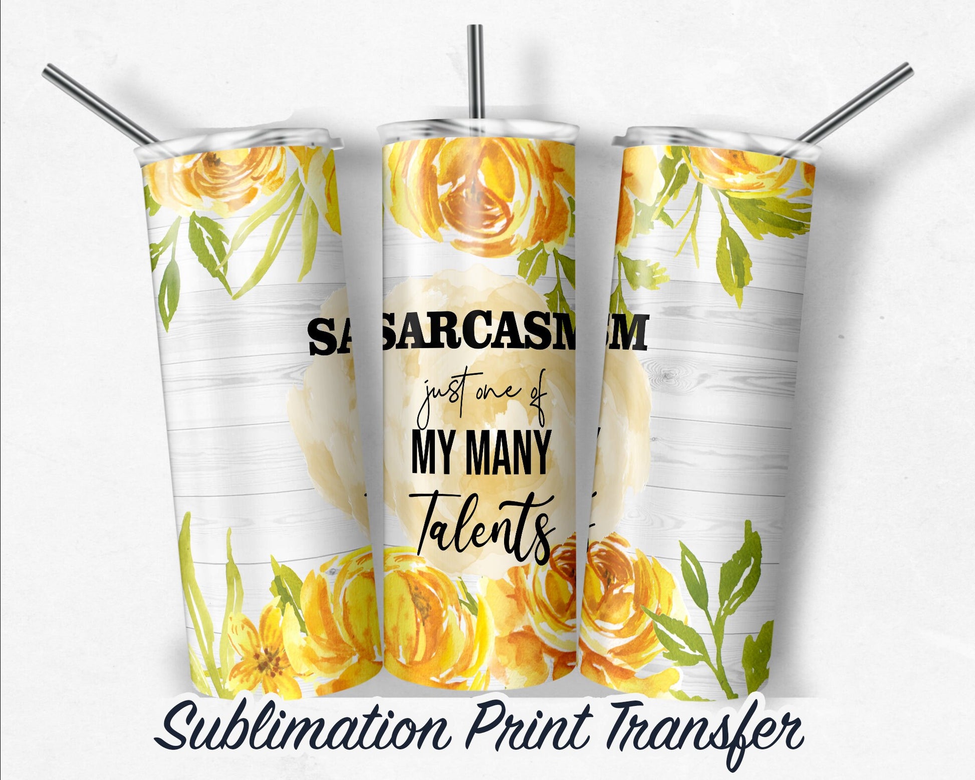 Yellow Floral Sarcasm Sublimation Transfer Print For 20 oz Tumbler - 30 oz Skinny Tumbler - RTP - Heat Transfers
